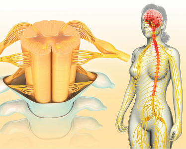 A capa de mielina se forma de cima para baixo ao longo da medula espinhal, localizada no interior da coluna vertebral, que é dividida em: cervical, torácica, lombar e sacral.